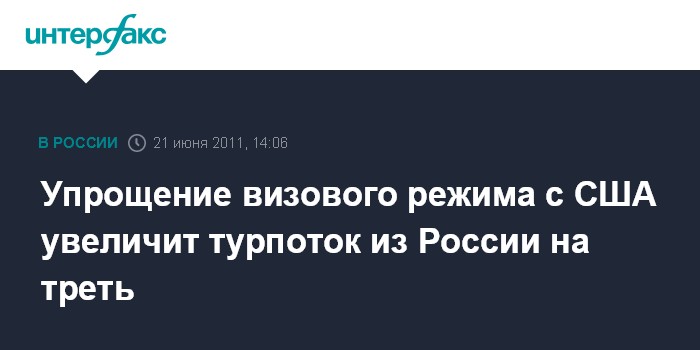 Москва. 21 июня. INTERFAX.RU - Упрощение визового режима для россиян при поездках в США будет способствовать улучшению имиджа страны, а также увеличит поток россиян как минимум на треть, сообщила генеральный директор туркомпании "Америка Трэвел" Маргарита Бабаян.
