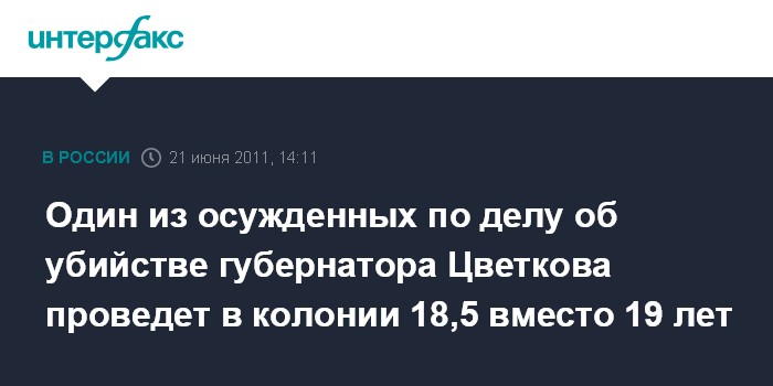 Один из осужденных по делу об убийстве губернатора Цветкова проведет в колонии 18,5 вместо 19 лет
