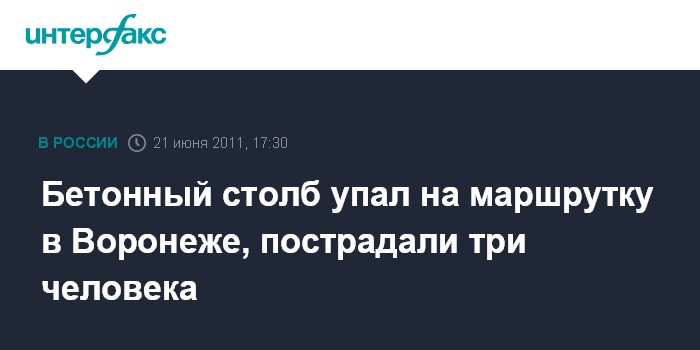 "По предварительной версии, маршрутку подрезала другая машина, и она врезалась в столб. От столкновения бетонный столб упал на маршрутку. В результате пострадали три человека, ехавшие в ней", - сказал представитель ГИБДД.