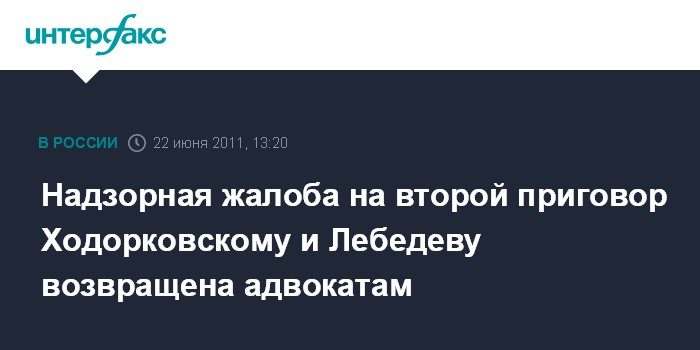 Надзорная жалоба на второй приговор Ходорковскому и Лебедеву возвращена адвокатам