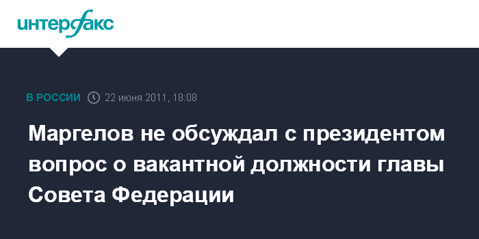 Маргелов не обсуждал с президентом вопрос о вакантной должности главы Совета Федерации