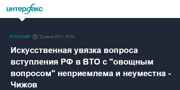 Искусственная увязка вопроса вступления РФ в ВТО с "овощным вопросом" неприемлема и неуместна - Чижов