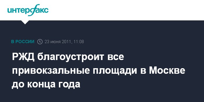Москва. 23 июня. INTERFAX.RU - ОАО "Российские железные дороги" (РЖД) намерено благоустроить все привокзальные площади Москвы до конца года, сообщил на брифинге начальник дирекции железнодорожных вокзалов РЖД Сергей Абрамов.