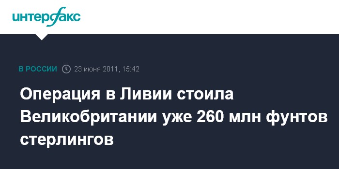 Лондон. 23 июня. INTERFAX.RU - Военная кампания в Ливии уже обошлась Великобритании в 260 млн фунтов стерлингов, сообщила в четверг газета The Guardian со ссылкой на министра обороны Лайама Фокса.