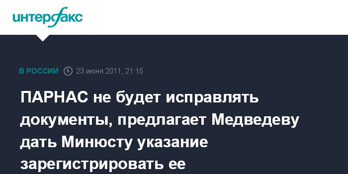 ПАРНАС не будет исправлять документы, предлагает Медведеву дать Минюсту указание зарегистрировать ее