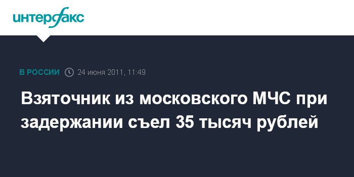 Москва. 24 июня. INTERFAX.RU - Сотрудник московского подразделения МЧС при задержании с поличным в туалете съел на глазах у полицейских 35 тысяч рублей, сообщили в столичном управлении СК РФ.