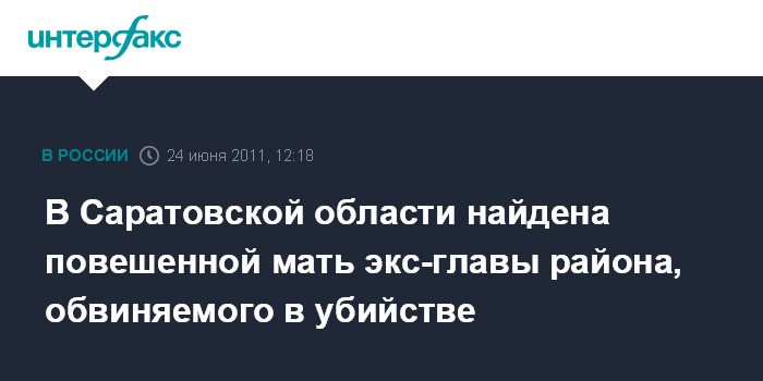 Саратов. 24 июня. INTERFAX.RU - В городе Энгельс Саратовской области, по предварительным данным, покончила жизнь самоубийством 81-летняя Ольга Лысенко - мать бывшего главы Энгельсского района Михаила Лысенко, обвиняемого в убийстве и во взяточничестве, сообщил "Интерфаксу" адвокат экс-чиновника Михаил Мамедов.