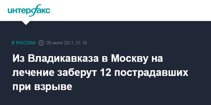 Из Владикавказа в Москву на лечение заберут 12 пострадавших при взрыве