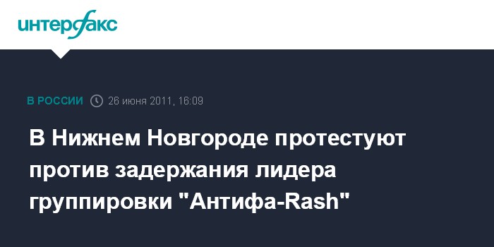 Нижний Новгород. 26 июня. INTERFAX.RU - Сторонники задержанного на минувшей неделе правоохранительными органами лидера группировки "Антифа-Rash" Артема Быстрова, называющие себя антифашистами, собрались на санкционированный пикет в его поддержку в центре Нижнего Новгорода. Как сообщил "Интерфаксу" один их участников пикета, мероприятие проходит с 15.00 до 17.00 мск на площади Горького.