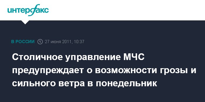 Столичное управление МЧС предупреждает о возможности грозы и сильного ветра в понедельник