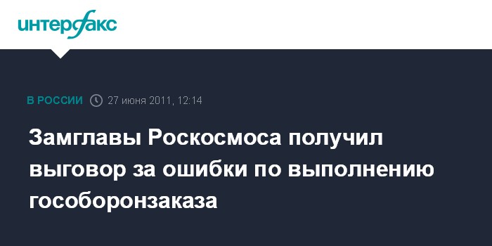 Замглавы Роскосмоса получил выговор за ошибки по выполнению гособоронзаказа