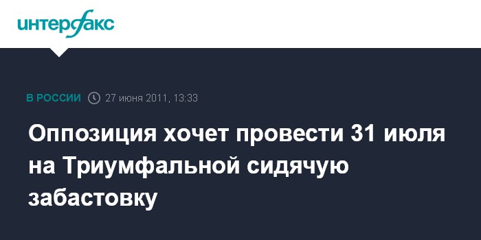 Москва. 27 июня. INTERFAX.RU - Оппозиционеры решили очередной митинг в защиту свободы собраний 31 июля на Триумфальной площади провести в виде сидячей забастовки.