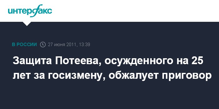 Защита Потеева, осужденного на 25 лет за госизмену, обжалует приговор