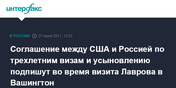 Соглашение между США и Россией по трехлетним визам и усыновлению подпишут во время визита Лаврова в Вашингтон