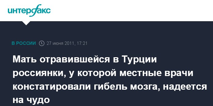 Ярославль. 27 июня. INTERFAX.RU - Мать ярославский студентки Виктории Николаевой, после отравления алкоголем находящейся в коме в турецкой больнице, категорически против использования органов своей дочери в качестве донорских.