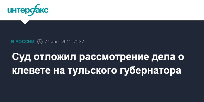 Суд отложил рассмотрение дела о клевете на тульского губернатора