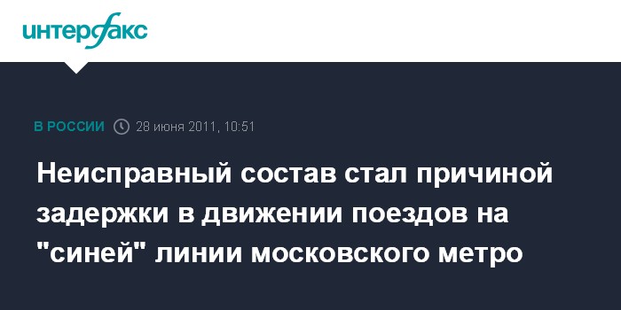 Москва. 28 июня. INTERFAX.RU - Из-за технической неисправности подвижного состава во вторник утром произошел небольшой сбой в движении поездов на Арбатско-Покровской линии Московского метрополитена.