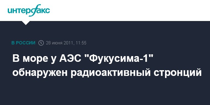 Токио. 28 июня. INTERFAX.RU - Специалисты из японской компании-оператора АЭС "Фукусима-1" TEPCO обнаружили радиоактивный стронций на дне моря в районе станции, сообщает во вторник радиотелевизионная корпорация NHK.