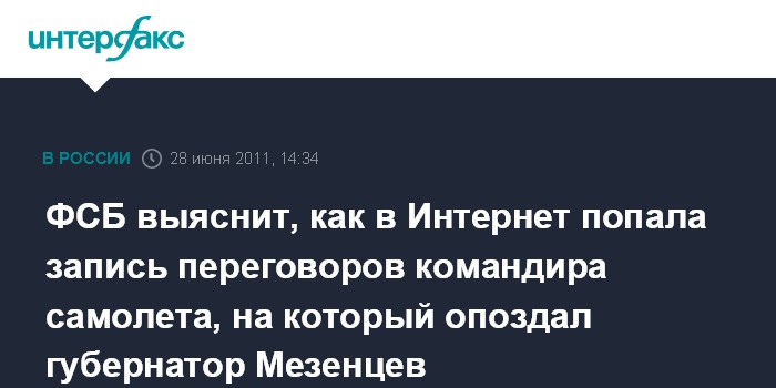 ФСБ выяснит, как в Интернет попала запись переговоров командира самолета, на который опоздал губернатор Мезенцев