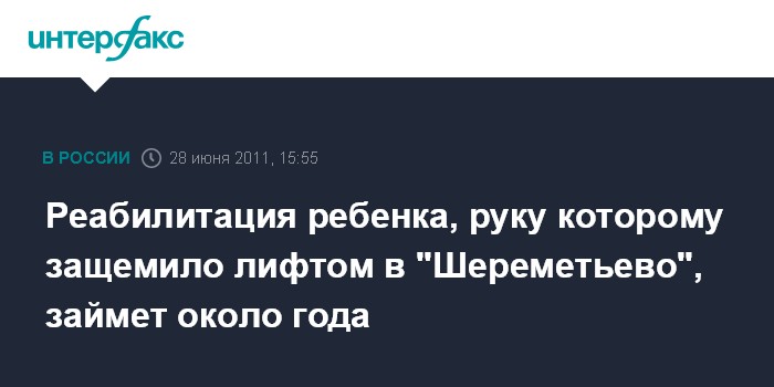 Реабилитация ребенка, руку которому защемило лифтом в "Шереметьево", займет около года
