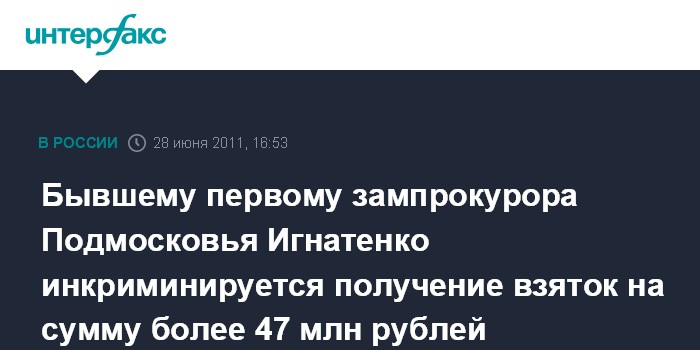 Бывшему первому зампрокурора Подмосковья Игнатенко инкриминируется получение взяток на сумму более 47 млн рублей