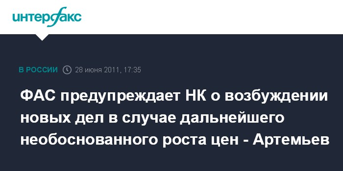 ФАС предупреждает НК о возбуждении новых дел в случае дальнейшего необоснованного роста цен - Артемьев