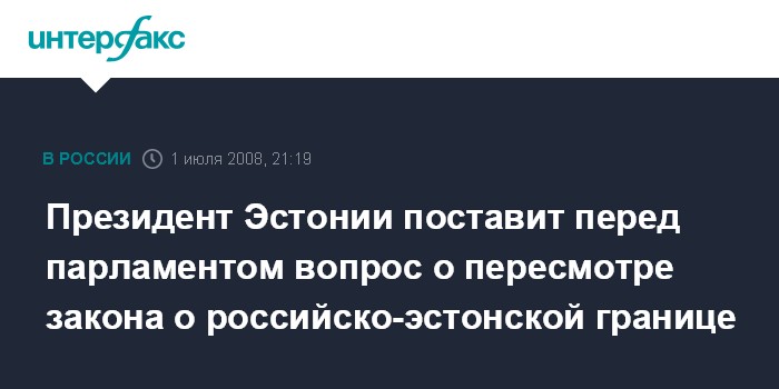 Таллин. 1 июля. ИНТЕРФАКС - Президент Эстонии Томас Хендрик Ильвес (Toomas Hendrik Ilves) поставит перед парламентом вопрос о пересмотре закона о ратификации эстонско-российских договоров о сухопутной и морской границе.