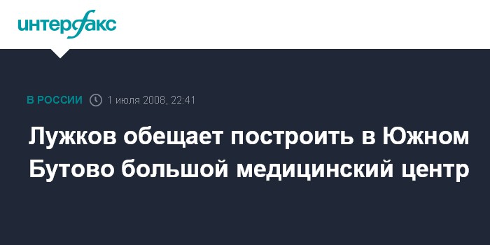 Москва. 1 июля. ИНТЕРФАКС-МОСКВА - Московские власти планируют построить медицинский центр в районе Южного Бутова недалеко от пруда, сообщил градоначальник Юрий Лужков.