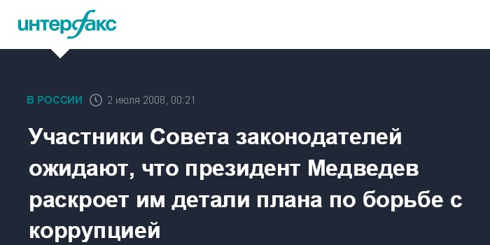 Участники Совета законодателей ожидают, что президент Медведев раскроет им детали плана по борьбе с коррупцией