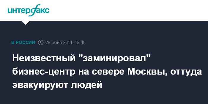 Неизвестный "заминировал" бизнес-центр на севере Москвы, оттуда эвакуируют людей