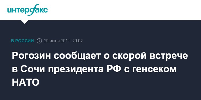 Рогозин сообщает о скорой встрече в Сочи президента РФ с генсеком НАТО