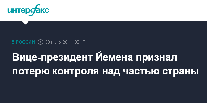 Вашингтон. 30 июня. INTERFAX.RU - Правительство Йемена потеряло контроль над пятью провинциями страны, и ситуация значительно ухудшилась, признался вице-президент Йемена Абду Рабу Мансур Хади в интервью американской телекомпании CNN.