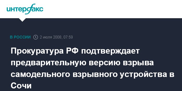Прокуратура РФ подтверждает предварительную версию взрыва самодельного взрывного устройства в Сочи