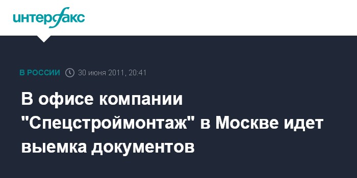 Москва. 30 июня. INTERFAX.RU - Московские полицейские проводят выемку документов в одном из офисов компании "Спецстроймонтаж", сообщил "Интерфаксу" в четверг вечером источник в правоохранительных органах.