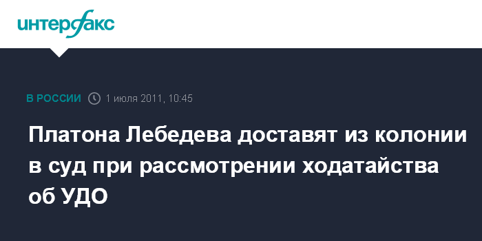Платона Лебедева доставят из колонии в суд при рассмотрении ходатайства об УДО