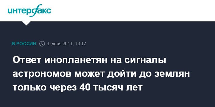 "Мы, конечно, отправляем сигналы. Но сомнительно, что в течение 20 лет мы сможем получить ответ. С ближайшей к нам звезды он будет идти до Земли около 40 тысяч лет, а из других галактик - еще дольше", - рассказал Степанов.