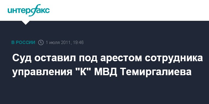 Как передает корреспондент "Интерфакса", таким образом суд удовлетворил ходатайство следствия о продлении срока содержания Темиргалиеву под стражей.