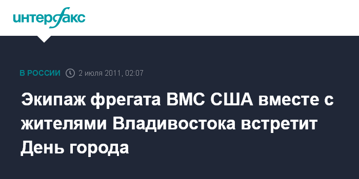 "Заход американского корабля совпадает сразу с двумя событиями - Днем города, который 2 июля празднуют во Владивостоке, и Днем независимости США, который в Соединенных Штатах отмечают 4 июля", - сообщил в среду агентству "Интерфакс - Дальний Восток" представитель пресс-службы ТОФ.