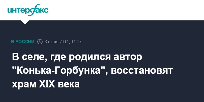 В селе, где родился автор "Конька-Горбунка", восстановят храм XIX века
