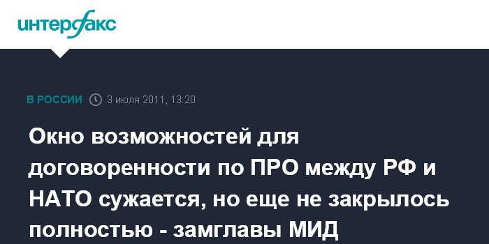 Окно возможностей для договоренности по ПРО между РФ и НАТО сужается, но еще не закрылось полностью - замглавы МИД