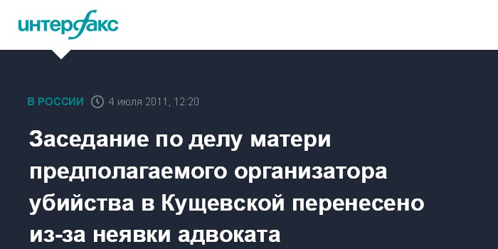 Краснодар. 4 июля. INTERFAX.RU - Заседание в Кущевском районном суде (Краснодарский край) по уголовному делу в отношении руководителя ООО "Артекс-Арго" Надежды Цапок - матери предполагаемого организатора убийства 12 человек в станице Кущевская, перенесено из-за неявки адвоката.