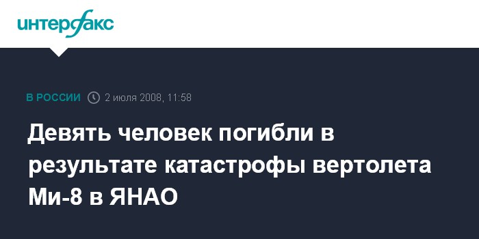 Девять человек погибли в результате катастрофы вертолета Ми-8 в ЯНАО