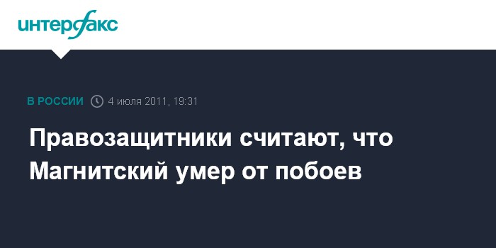 "В докладе для президента мы пишем, что Магнитский умер из-за избиения. Это наша версия. Это самая настоящая пытка", - сказал Борщев "Интерфаксу" в понедельник.