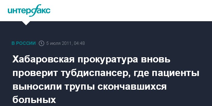 Хабаровская прокуратура вновь проверит тубдиспансер, где пациенты выносили трупы скончавшихся больных