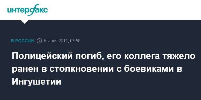 "В ночь на вторник в ходе проведения оперативных мероприятий сотрудники Малгобекского РОВД наткнулись на группу боевиков в лестном массиве. В результате боестолкновения один полицейский погиб, еще один тяжело ранен", - сказал собеседник агентства.