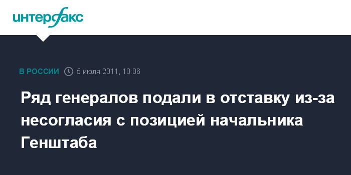 Как рассказал газете на условиях анонимности один из высокопоставленных офицеров Минобороны, в армейской среде сформировалось мнение, что многие военачальники, которые написали рапорта на увольнение, намерены оставить военную службу из-за несогласия с теми шагами по реформированию армии, которые сейчас проводит начальник Генерального штаба.