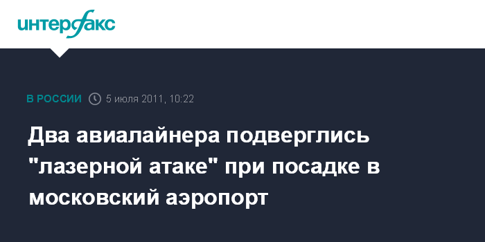 Москва. 5 июля. INTERFAX.RU - Неизвестные хулиганы вновь попытались ослепить лазером два пассажирских самолета при посадке во "Внуково", сообщили "Интерфаксу" во вторник в Росавиации.