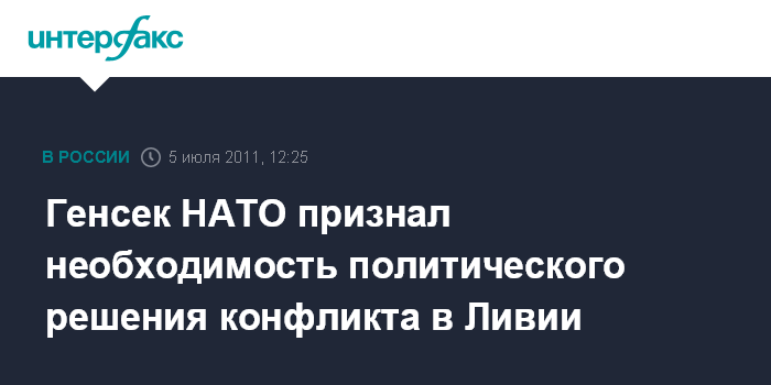 Санкт-Петербург. 5 июля. INTERFAX.RU - Единственно верного военного решения ситуации в Ливии не существует, необходимы политические действия, убежден генеральный секретарь НАТО Андерс Фог Расмуссен.
