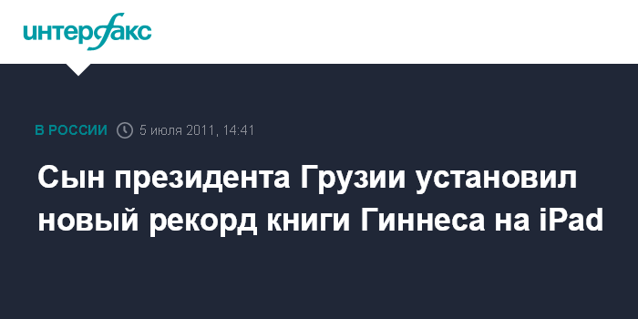 Тбилиси. 5 июля. INTERFAX.RU - Сын президента Грузии Михаила Саакашвили Эдвард побил рекорд книги Гиннеса по скорости печатания правой рукой английского алфавита на iPad.