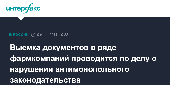 Выемка документов в ряде фармкомпаний проводится по делу о нарушении антимонопольного законодательства